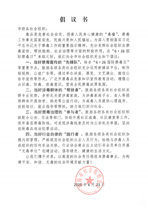 - 06-25禁毒倡議書(shū)